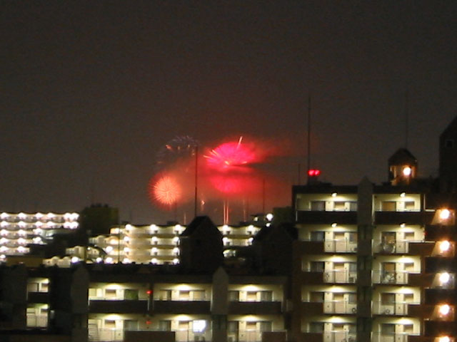 今年も例によってマンションの非常階段からの遠花火ですのでこんな感じ。 でもこれだけ遠くてもフィナーレの迫力はやっぱすごい。