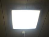 前の機種は天井から少し下にぶらさがってたんだけど、今度のは天井の端子にアダプタを取り付け、そこへそのまま本体をはめ込む方式なので、ちょっとだけ部屋が広くなった感じがします。