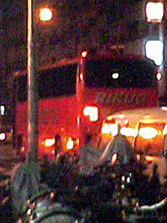 カメラの腕前、性能ともにいまひとつのため、この写真がわかりづらいのが残念ですが、バスの後部にははっきり「RIKUO」と書いてあります。サイドにも「RIKUO KOTSU」と書かれています。